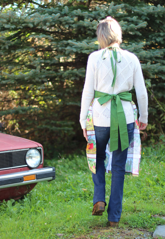 Gathered Bib Apron in Veggies and Garden Seed Packets
