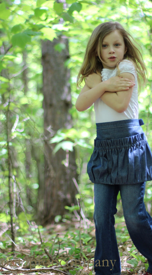 Childrens Ruffled Gathering Apron in Navy Denim