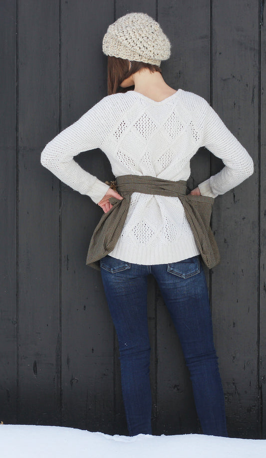 Gathering Apron in Ecru and Red Plaid 100% Cotton Homespun in Regular and Plus Sizes
