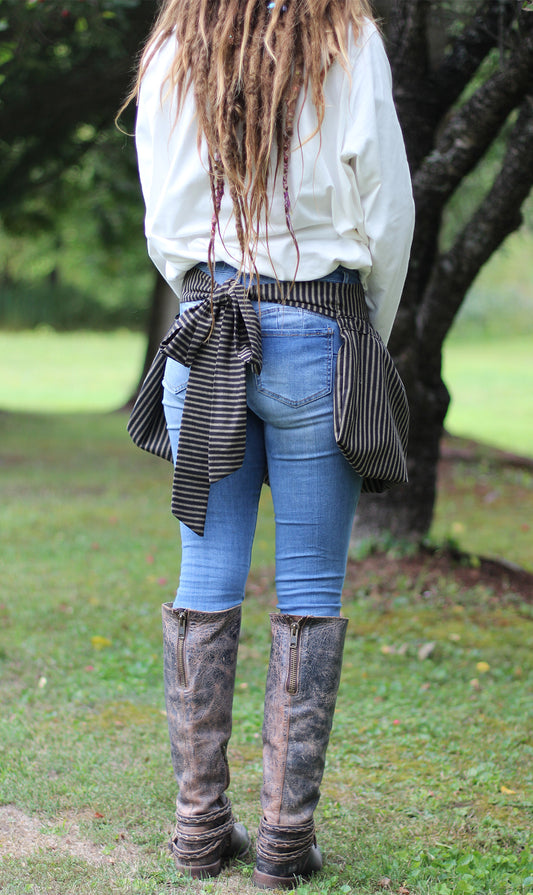 Gathering Apron in Black Stripe 100% Cotton Homespun in Reg and Plus Sizes