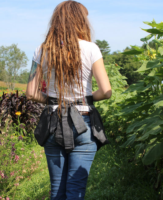 Gathering Apron in Black Denim in Reg and Plus Sizes