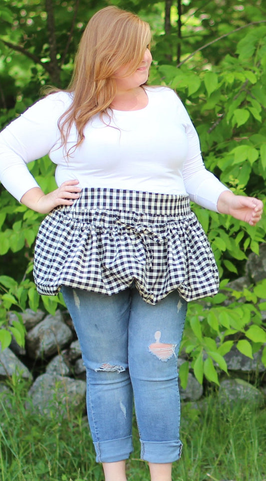 Gathering Apron in Black and White Plaid 100% Cotton Homespun in Reg and Plus Sizes