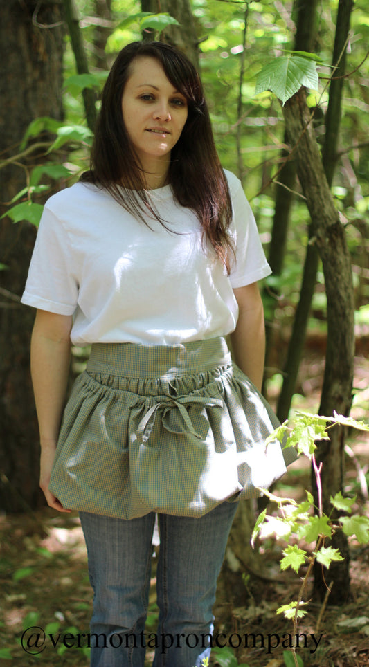 Gathering Apron in Mini Green Plaid 100% Cotton Homespun in Reg and Plus Sizes