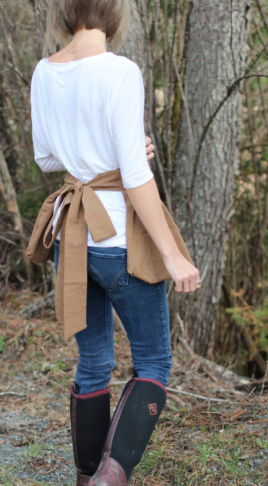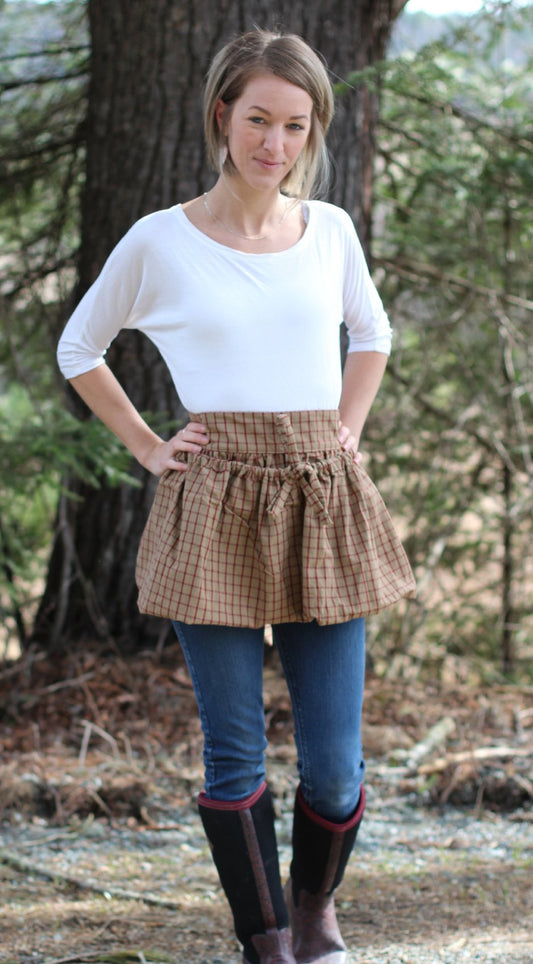 Gathering Apron in Brown Mini Plaid in Regular and Plus sizes in 100% Cotton Homespun