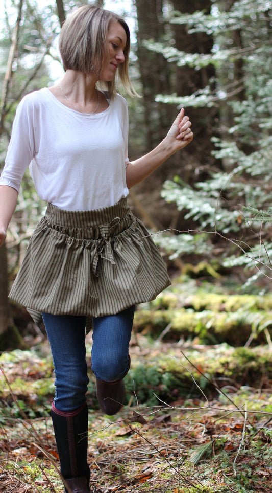 Gathering Apron in Green Stripe in Regular and Plus Sizes in 100% Cotton Homespun