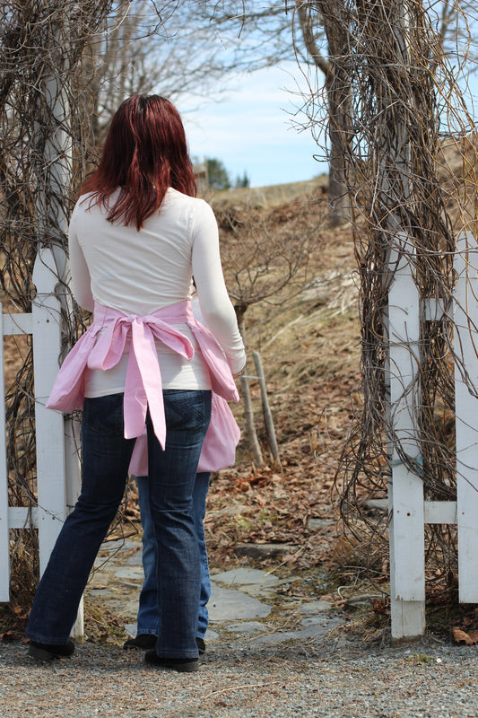 Gathering Apron in Mini Pink Plaid 100% Cotton Homespun