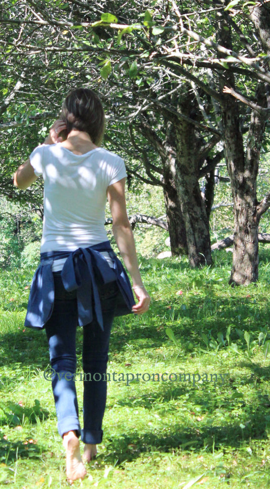 Gathering Apron in Dark Blue Denim in Reg and Plus Sizes