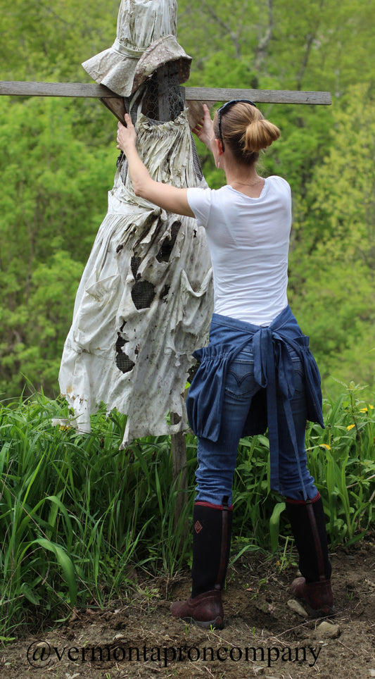 Ruffled Gathering Apron in Navy Denim