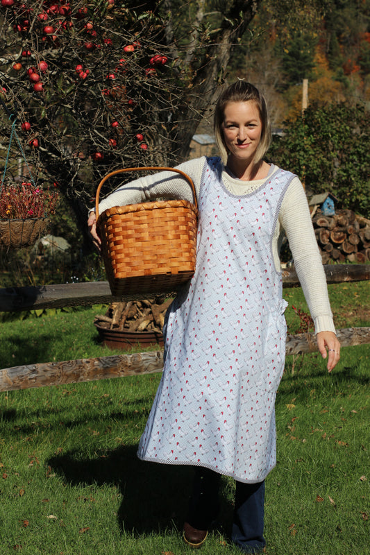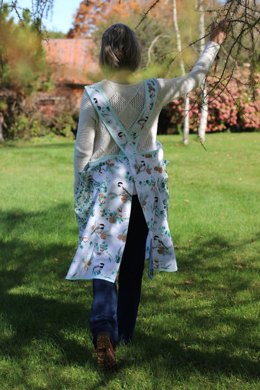 Medium 42" No Tie Apron in Birdhouse Print Sample